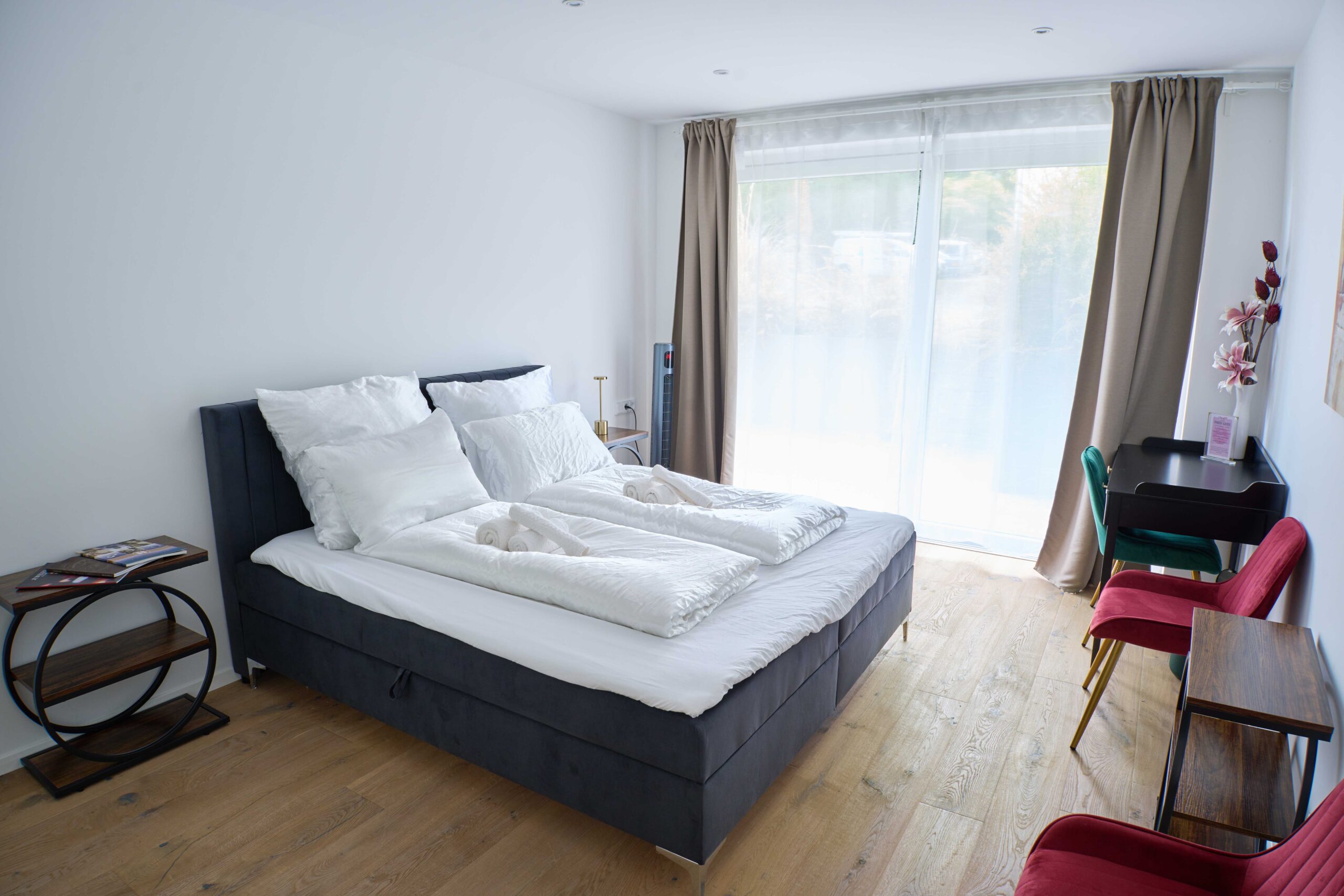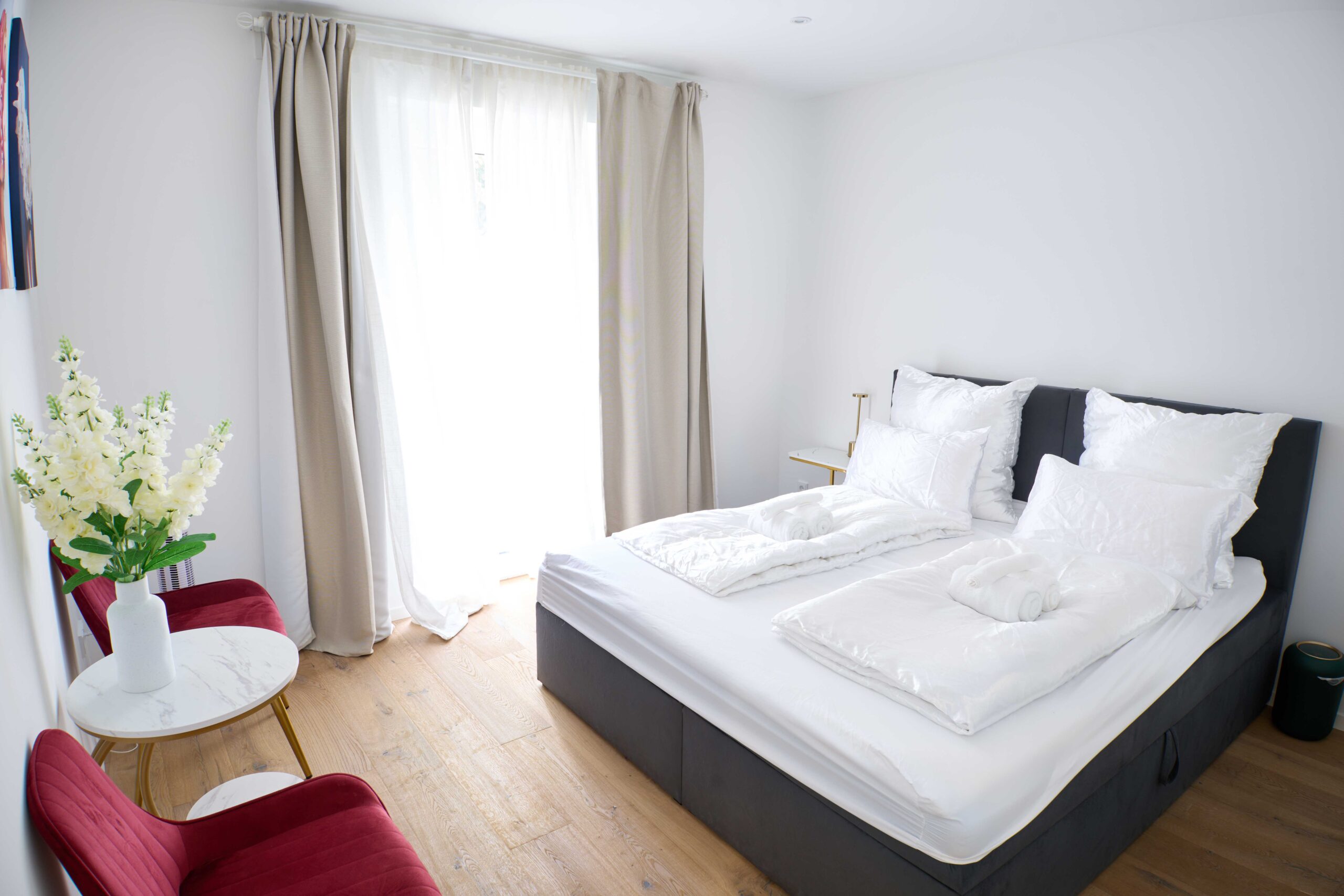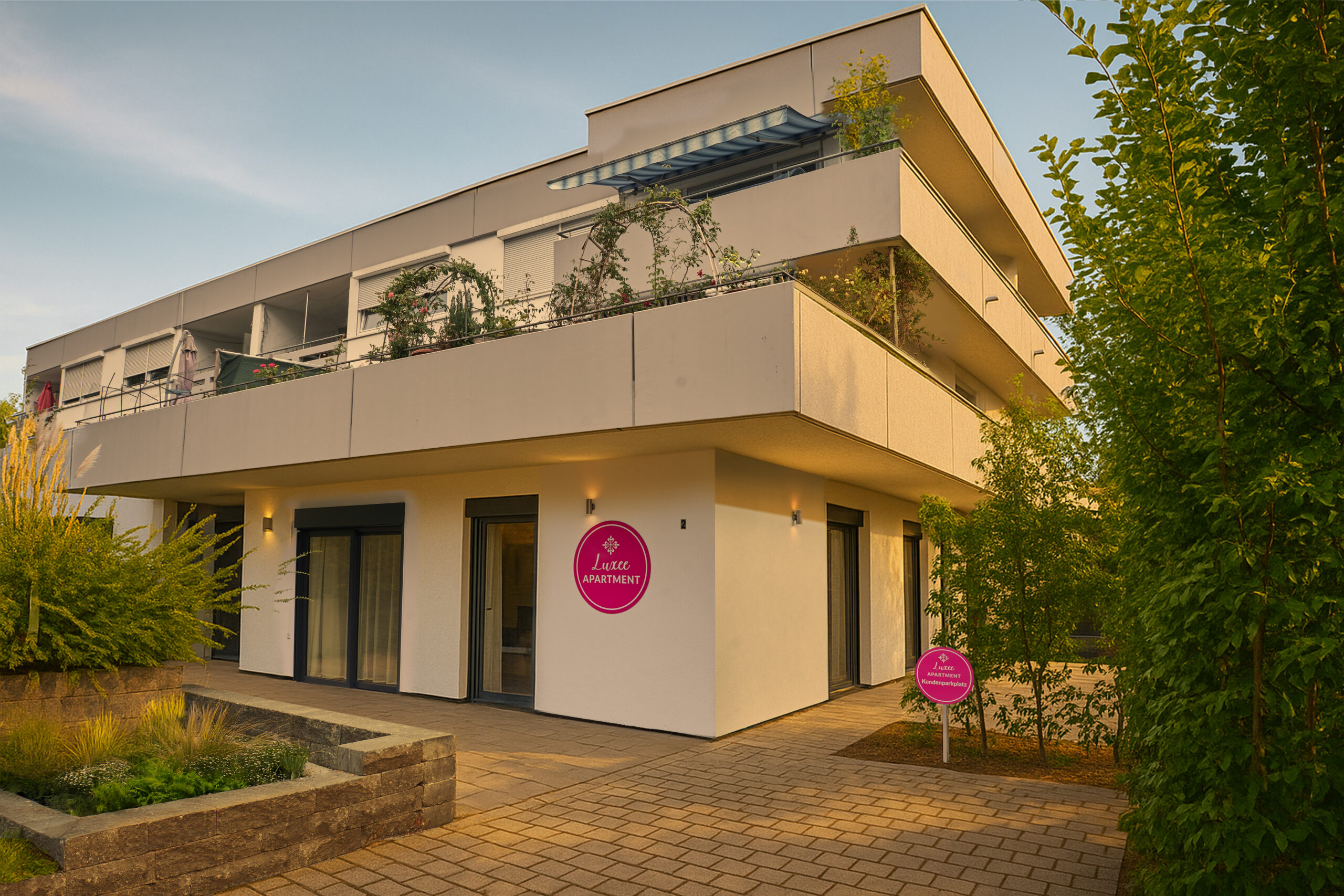 Comfortable Accommodations: Luxee Apartment in Friedrichshafen offers a sun terrace, garden, and free WiFi. The ground-floor unit features a private entrance and garden views.